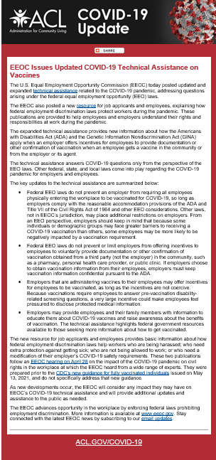 ACL has updated the COVID-19 Toolkit for Community and Faith-Based Organizations